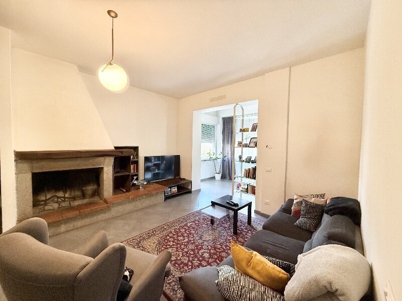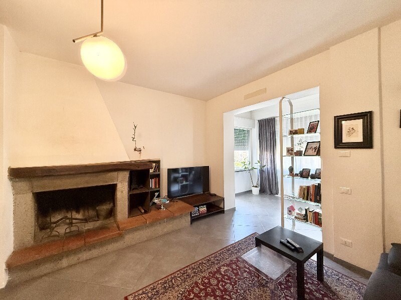 L'immobile è composto da: ingresso su grande sala con camino e accesso alla terrazza abitabile ottima per pranzi e cene o semplicemente per avere uno spazio esterno, comunicante dalla sala si puo' accedere a una zona studio e all' ampia cucina con accesso alla zona lavanderia. Nella zona notte si accede tramite un corridoio molto pratico, dove ci sono 3 grandi camere matrimoniali, di cui una padronale con bagno in camera e cabina armadi. I servizi sono due uno con vasca e uno con la doccia.
